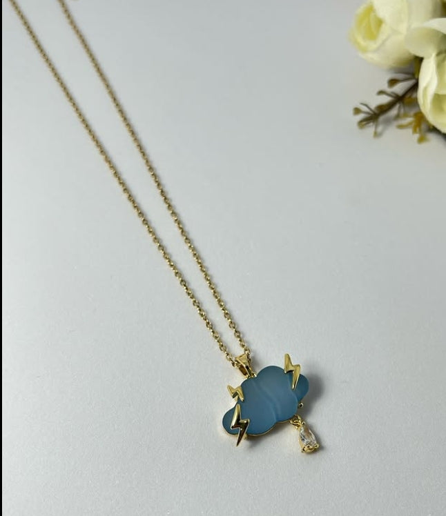 Çelik Kararmaz Mavi Bulut Altın Renk Kolye